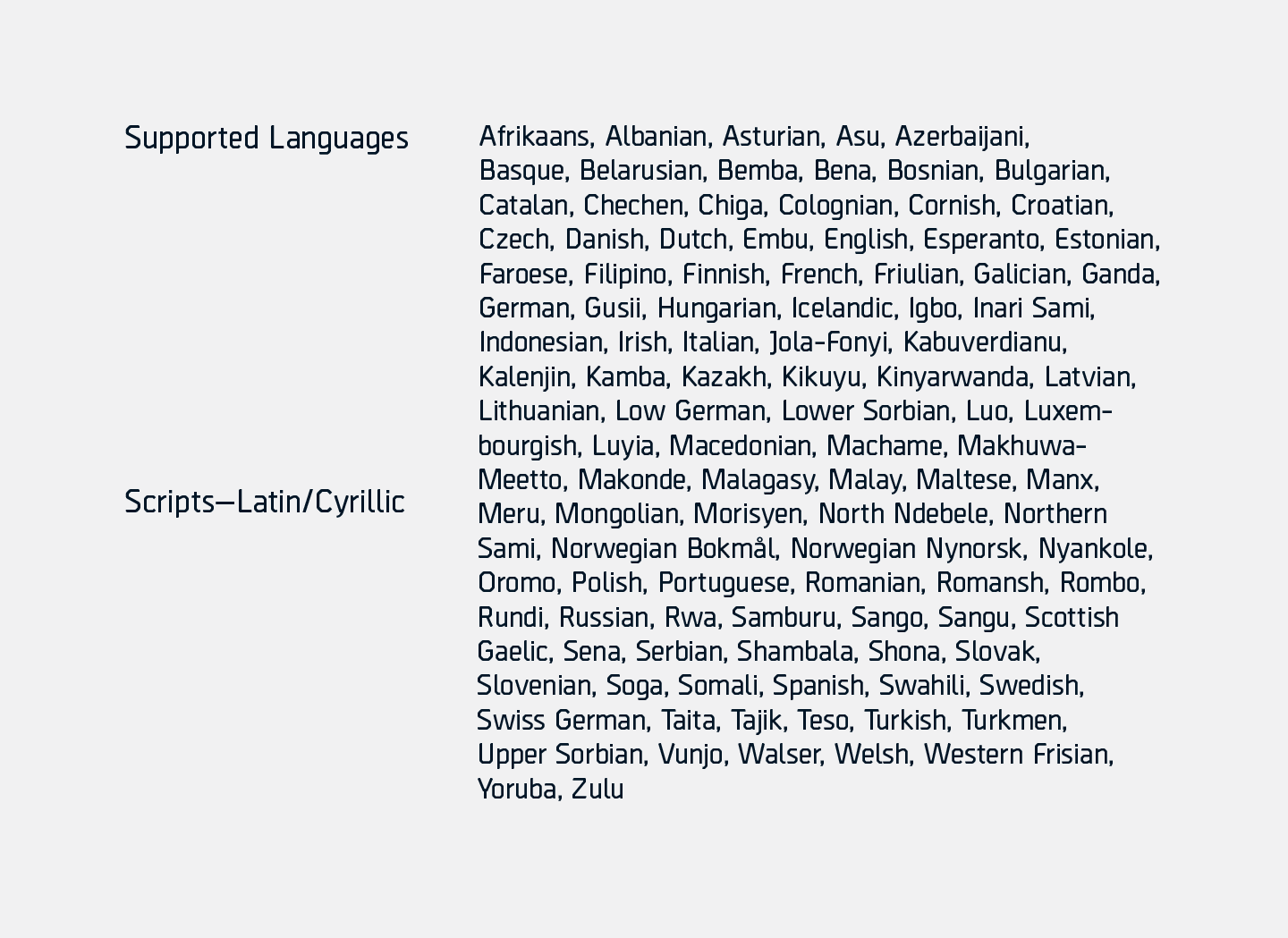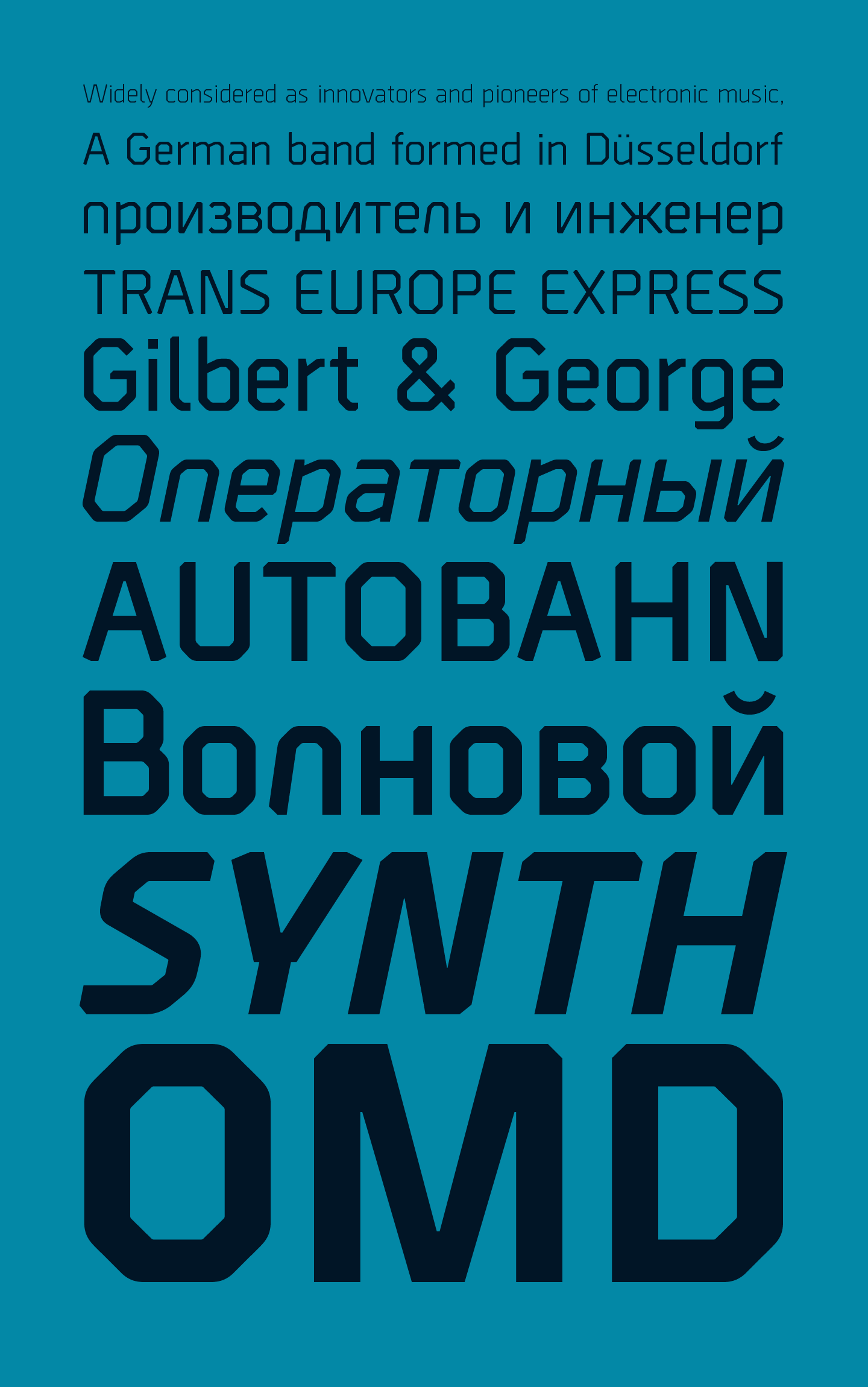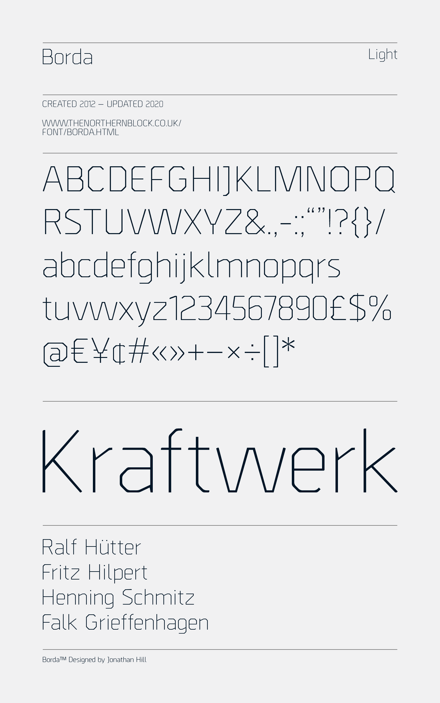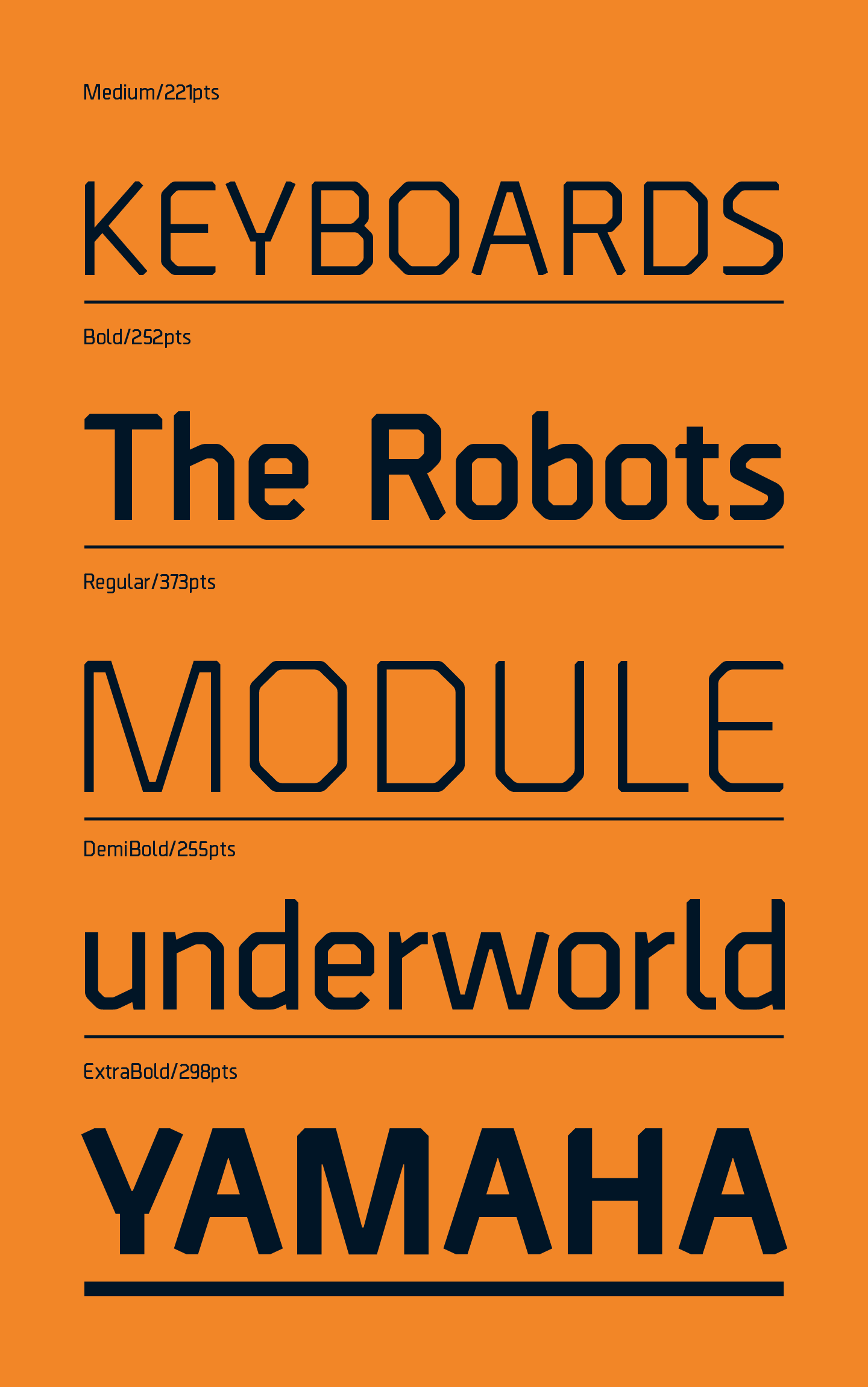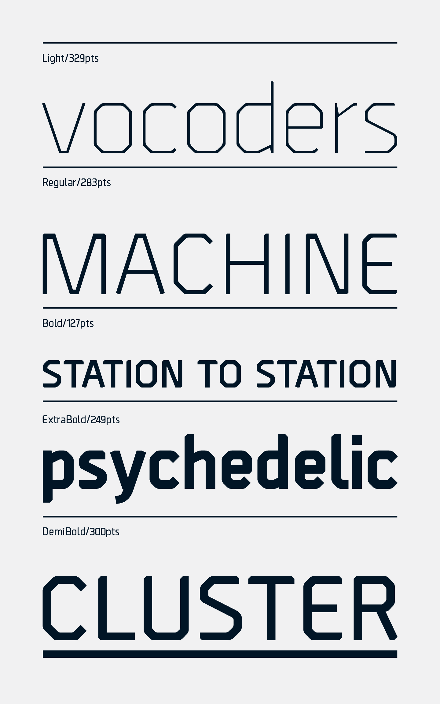 Borda is a precisely drawn geometric typeface. Exacting angles are combined with smooth corner details to form a clean, legible font with a futuristic appearance. The mechanical aesthetics help give a unique look to screen-based designs, while the compact nature of the letterforms allows for great use of space across long text scenarios. Details include six weights with matching italics and over 660 characters per style. Opentype features consist of four variations of numerals: decimal, tabular, numerators, denominators, fractions, and language support covering Western, South, Central Europe and Cyrillic.
