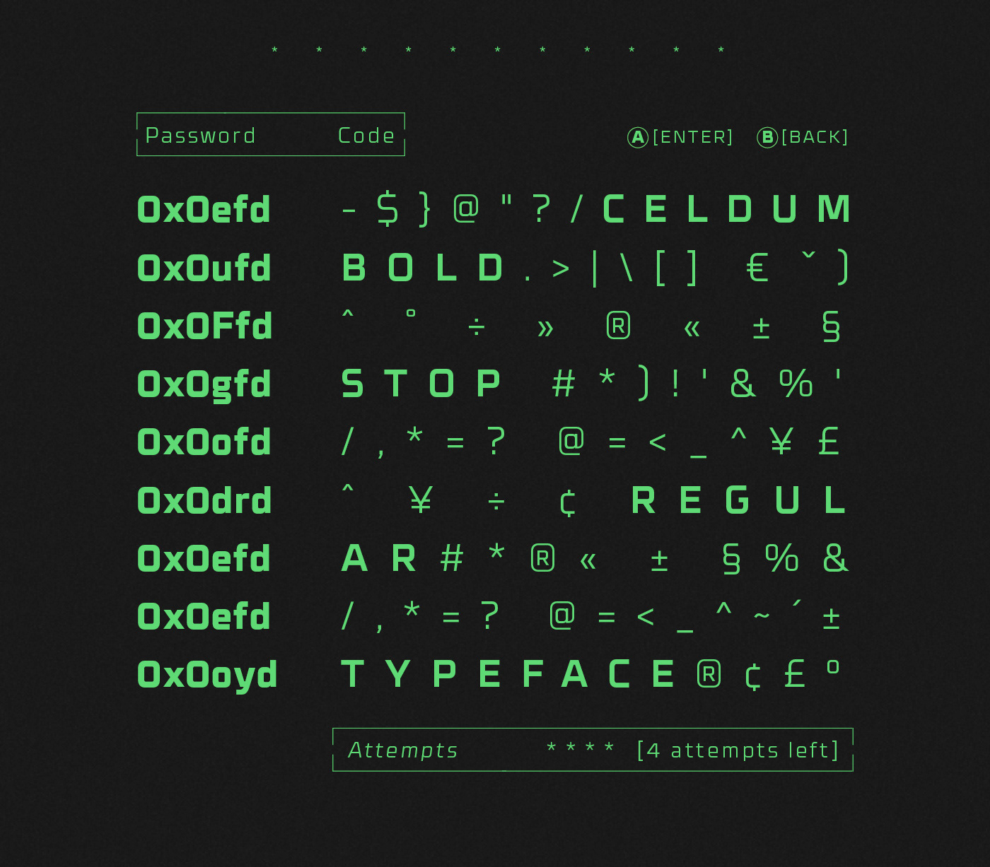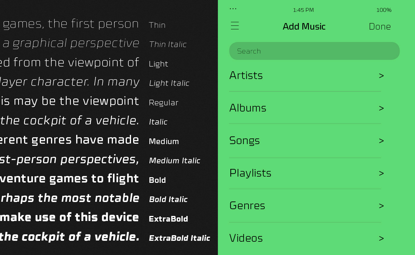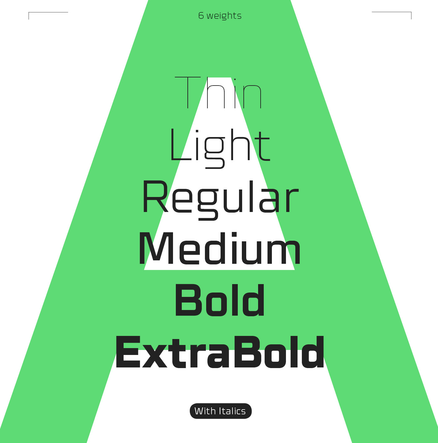 Celdum, a modern geometric type family, constructed from a rectangular grid. Smooth, precise curves meet horizontal and vertical lines to create a monoline design with no apparent contrast. Each letter shape has unique subtleties creating a purposeful type family suited to text and branding scenarios within mobile applications, video games and other interactive software. Details include six weights with italics, 460 characters, five variations of numerals, manually edited kerning and Opentype features.