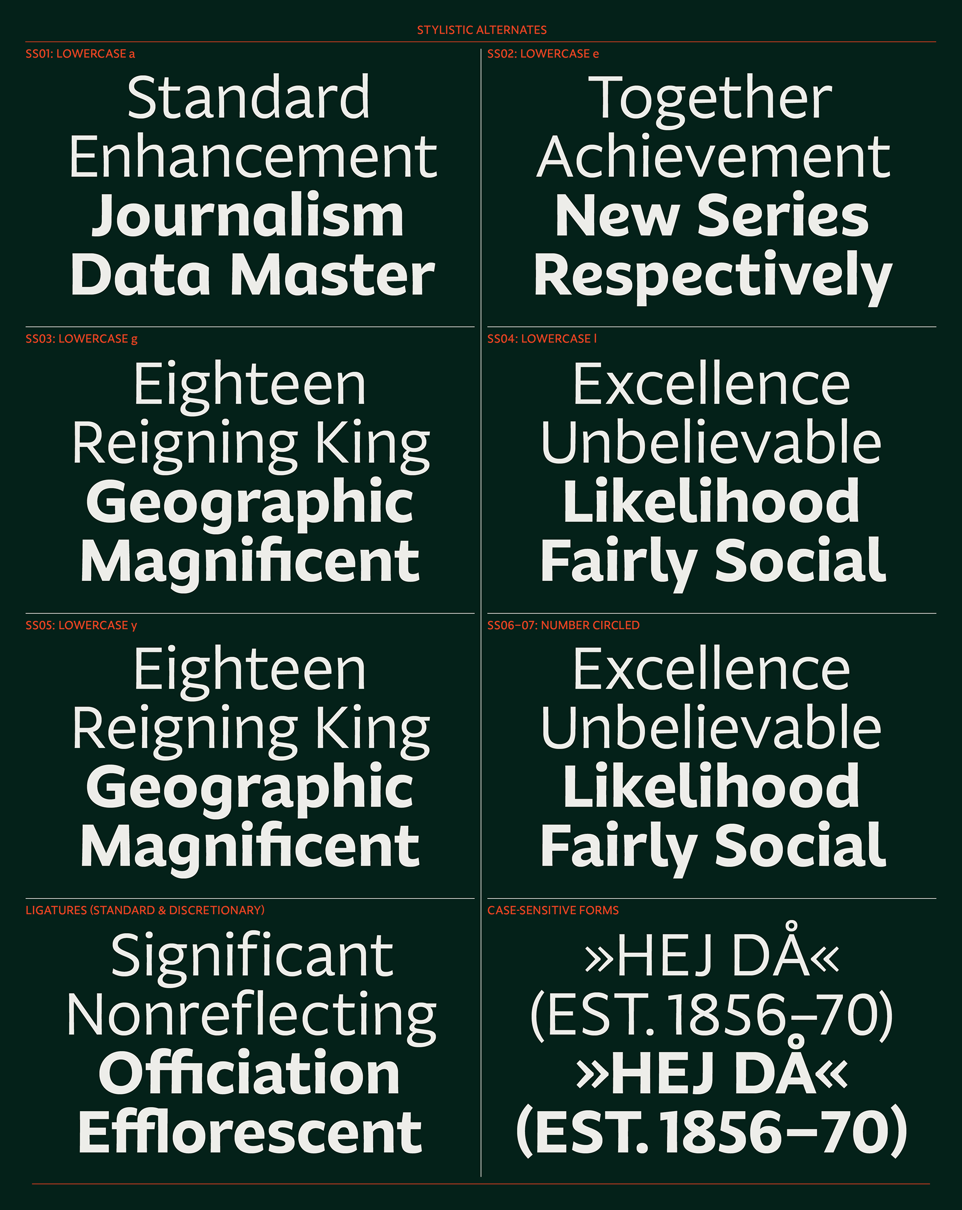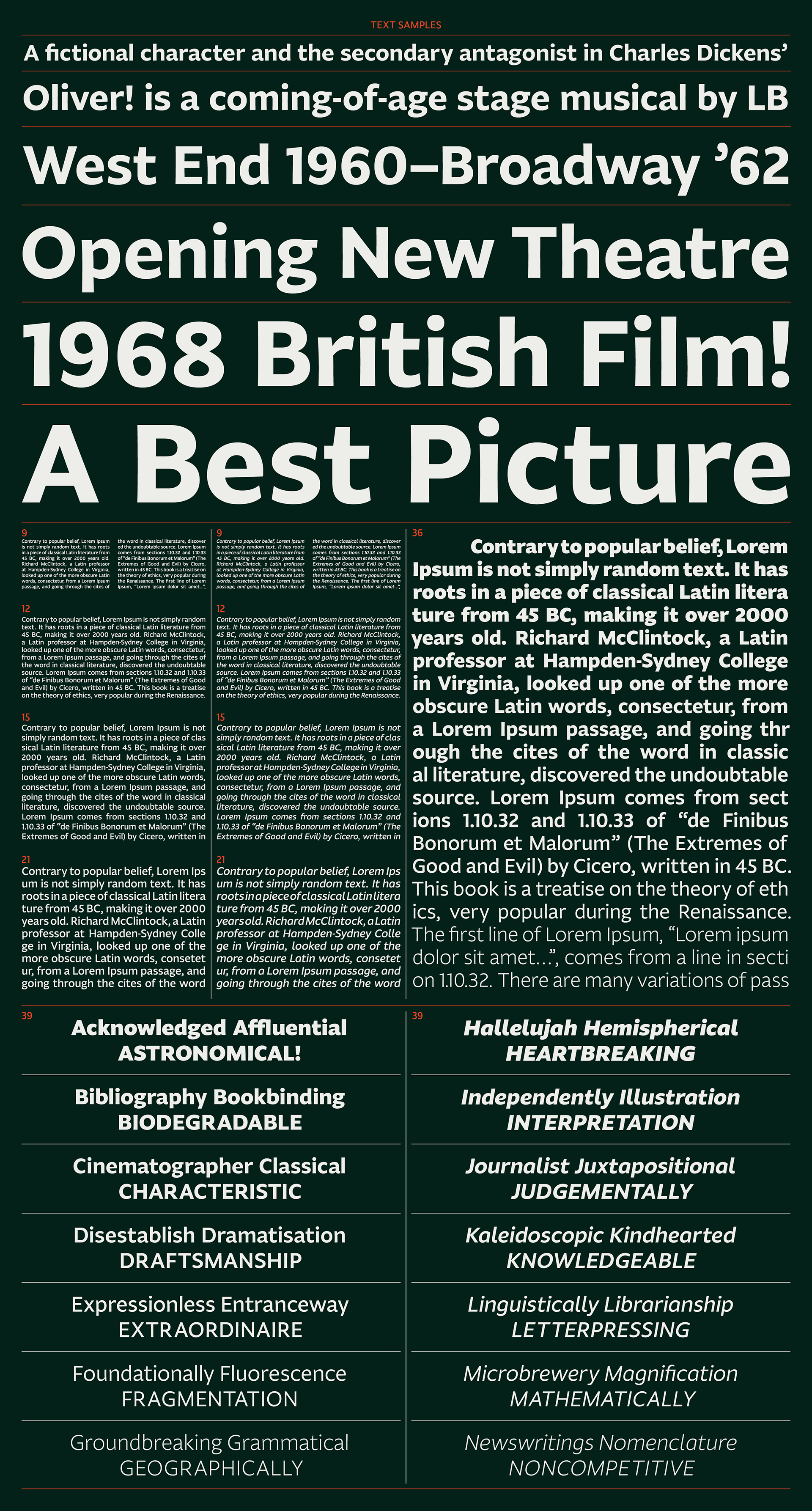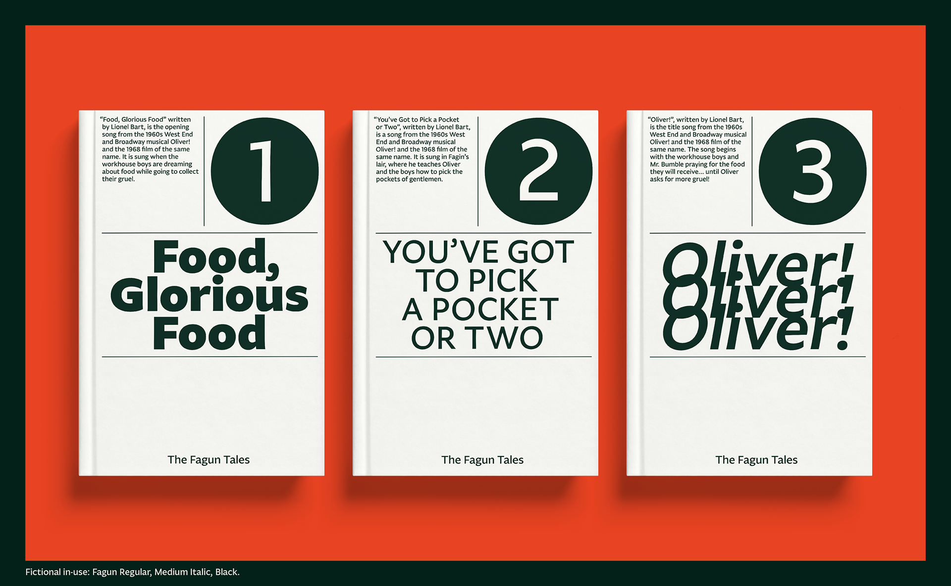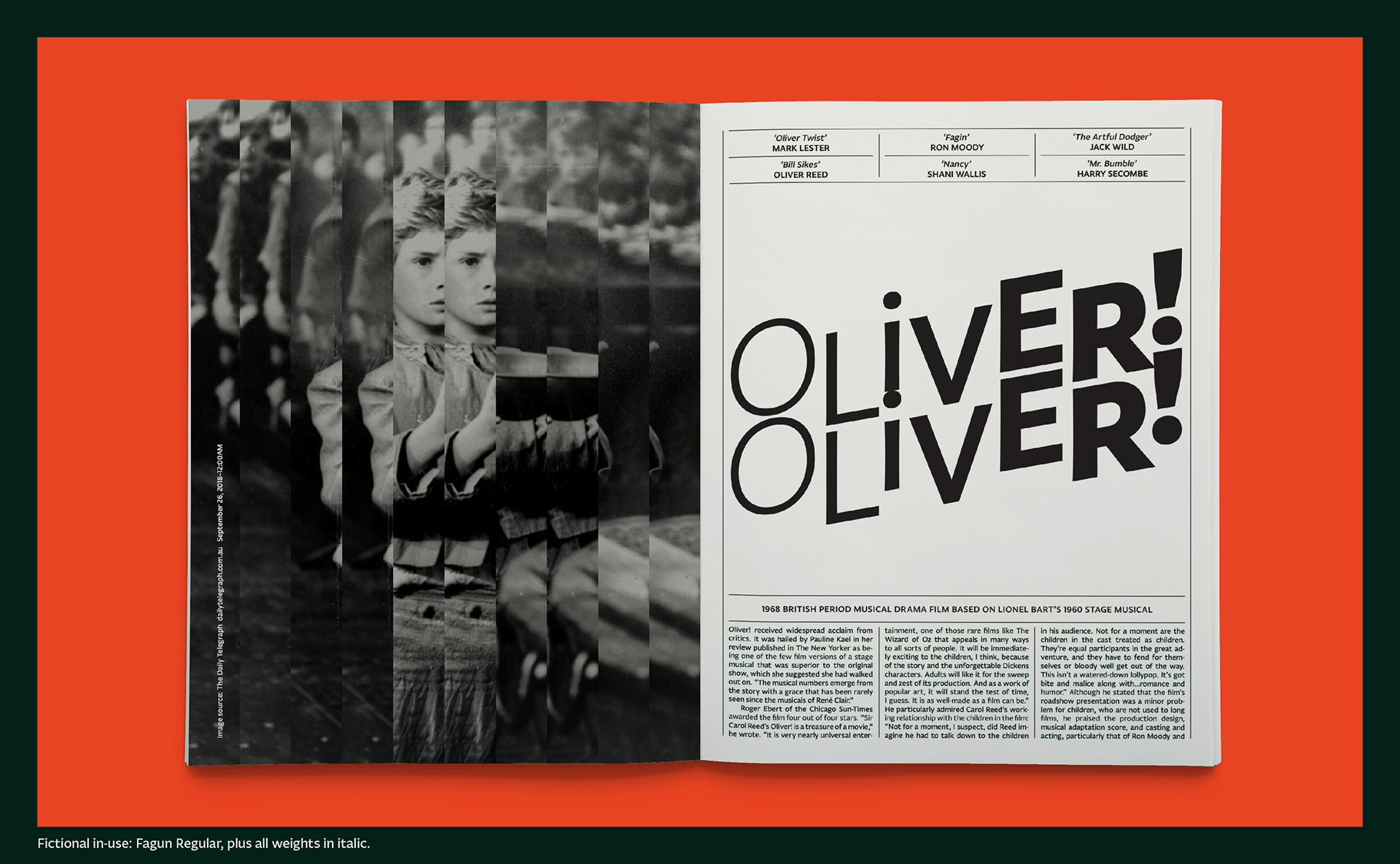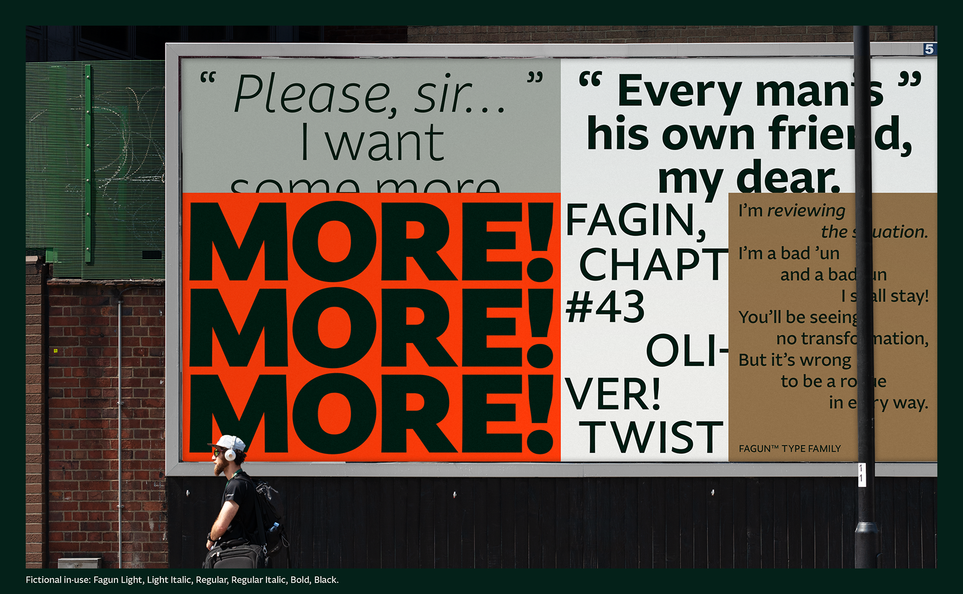 Fagun is a humanist sans-serif with calligraphic roots. The method combines broad nib pen-style strokes with straight-line geometry to form a compelling and coherent typeface suitable for long lines of text.