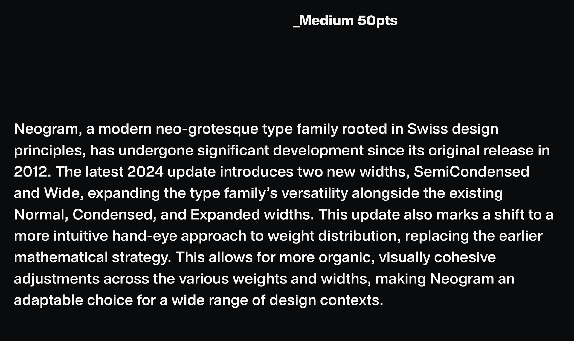 Take advantage of the latest Neogram upgrade with an exclusive deal: for a limited time, get the entire type family—90 fonts—for just $40. Experience the versatility of Neogram’s updated widths, intuitive weight system, and new features at an unbeatable price.